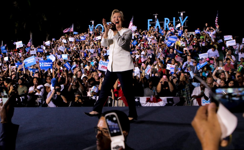 Democratic presidential nominee Hillary Clinton holds a campaign rally at Reverend Samuel Delevoe Memorial Park in northwest Fort Lauderdale on Tuesday, Nov. 1, 2016.