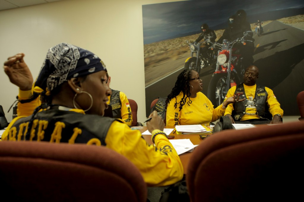 Members of the Buffalo Soldiers Motorcycle Club Miami Chapter volunteer in the community, discuss history, and ride their bikes all over the country. The group is named after the black soldiers in the US Army’s 9th and 10th Calvary units that fought against Native Americans on the western frontier after the Civil War. The members meet once a month to discuss topics related to the club and make history personations. Alvin Forbes, center, makes a presentation during the teams monthly meeting Saturday in Sunrise. Randy Vazquez, South Florida Sun-Sentinel